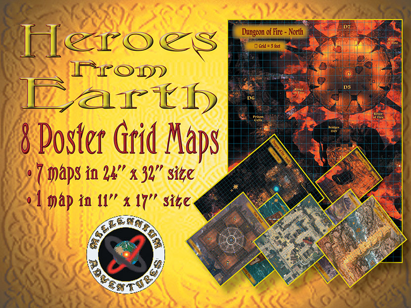 Millennium, a world we’ve spent twenty-five years creating, is enhanced by our vision of the ideal Game Master support system, featuring top-quality Videos, poster-sized Grid Maps, and 24 in. x 32 in.” global Relief Maps..