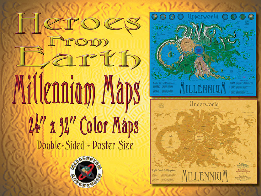 Millennium, a world we’ve spent twenty-five years creating, is enhanced by our vision of the ideal Game Master support system, featuring top-quality Videos, poster-sized Grid Maps, and 24 in. x 32 in.” global Relief Maps..